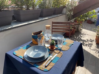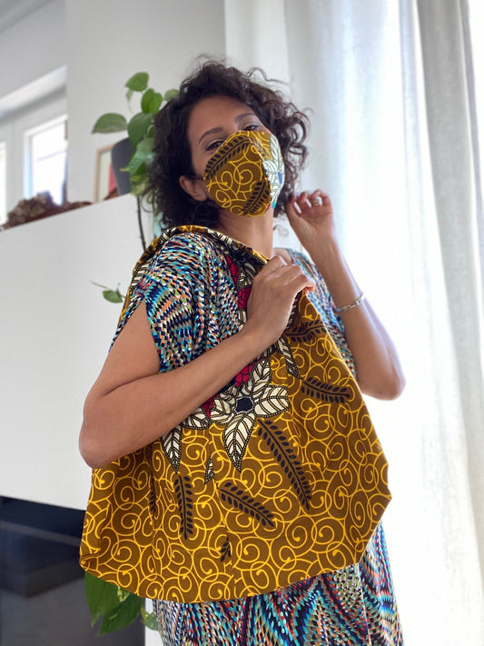2 Tovagliette americane + 1 portapane Wax africano double face